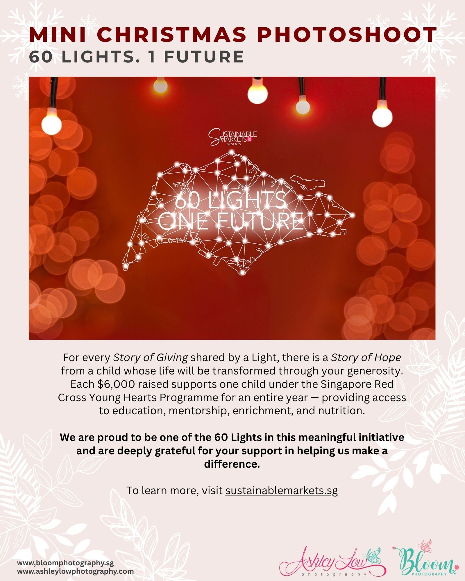 50% of proceeds from the campaign will go towards the Singapore Red Cross’ “60 Lights. One Future” initiative, which aims to raise $6,000 to support a child in need with essentials such as education, food, and lodging. For more info about this campaign, pls refer to www.sustainablemarkets.sg